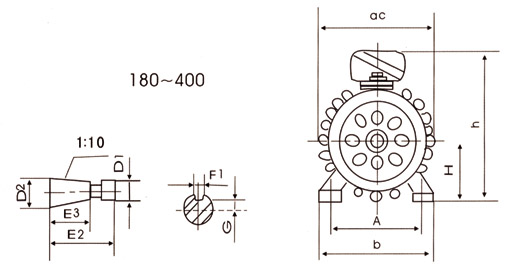 基準工作制(S340%)時的額定輸出功率和同步轉速見表1(籠型電動機制造粗線框內的規格)