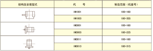 3 電動(dòng)機(jī)結(jié)構(gòu)安裝型式見(jiàn)表