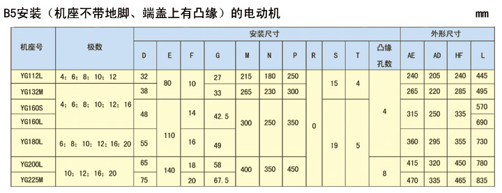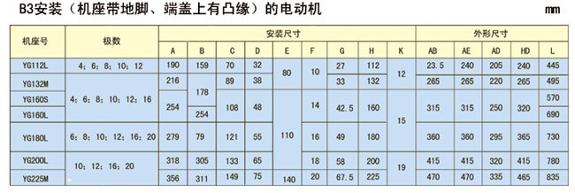 YG系列輥道用三相異步電動機分別設計成YGA和YGB兩種工作型式,YGA適用于工作輥道,工作制為S5,YGB適用于輸送輥道,工作制為S1。